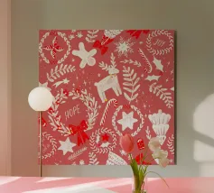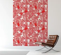 Natale in rosso e bianco con elementi festivi tradizionali