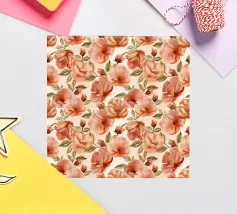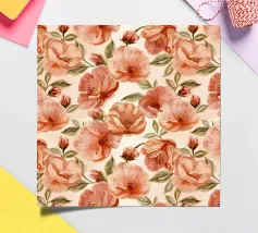 Uno splendido motivo floreale acquerellato con fiori color corallo, pesca e salmone e foglie verde salvia su un caldo sfondo crema. Questo romantico disegno botanico cattura la delicata bellezza dei fiori dipinti a mano con una tavolozza di colori delicati e una disposizione fluida. Perfetto per gli amanti dell'acquerello, gli appassionati del corallo, i fan dell'estetica soft e tutti coloro che apprezzano la bellezza sognante dei fiori color pesca con un tocco delicato e artistico.