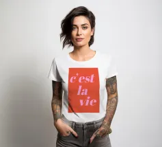 C'est la vie, citazione francese, vibrazioni positive, tipografia, rosa e rosso