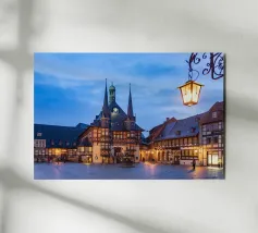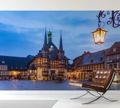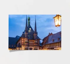 Il municipio e il mercato di Wernigerode al tramonto, Sassonia-Anhalt, Germania | Il municipio e il mercato di Wernigerode al tramonto, Sassonia-Anhalt, Germania, Europa