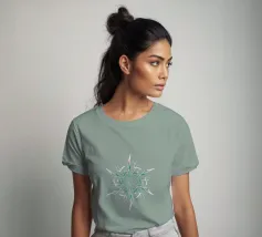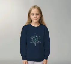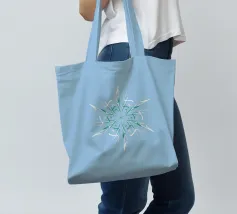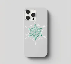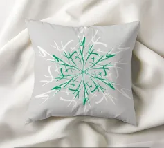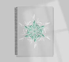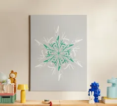 Design invernale: una stella dinamica a sei punte disegnata a mano in bianco e verde su uno sfondo grigio argento.