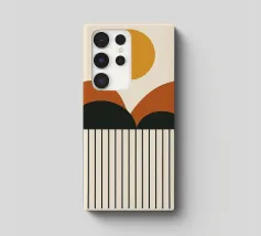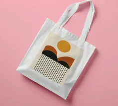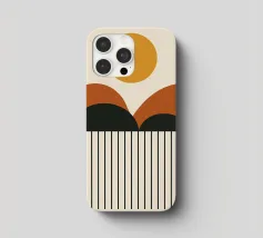 Un sole stilizzato sorge su colline arrotondate, mentre linee verticali cadono come pioggia soffice: una meditazione grafica sull'equilibrio e sugli inizi. Questo pezzo astratto di ispirazione Bauhaus invita alla calma e al ritmo nello spazio che abita.
