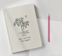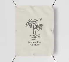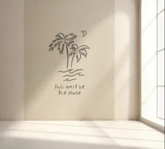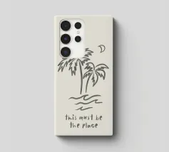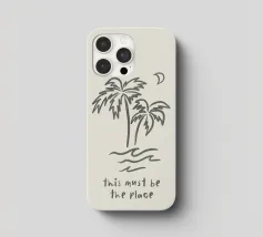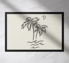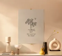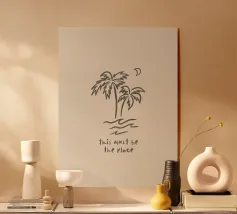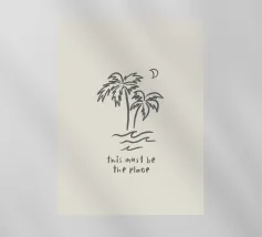 This Must Be The Place minimalista nero crema boho line art in acquerello, palme, luna, paradiso tropicale, onde, surf. Una pace boho da sogno perfetta per i surfisti, gli amanti delle spiagge boho, le ragazze dell'arredamento costiero e i viaggiatori in generale o gli avventurieri che amano l'estetica del viaggio. In delicati toni neutri boho, nero e crema, che conferiscono un'atmosfera organica e retrò.