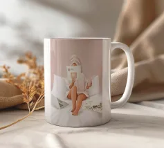 In questa affascinante illustrazione, una dolce bambina si rilassa in un accogliente pigiama ricoperto di cuoricini, appollaiata su un divano imbottito. È assorta nel suo libro, con uno sguardo espressivo di curiosità e soddisfazione. Sopra di lei, una luce calda emana da un'elegante lampada, mentre una delicata tazza da tè si trova nelle vicinanze. Il testo scherzoso "Perché non posso leggere tutto il giorno?" sottolinea lo stato d'animo sognante della lettura e del tempo libero.