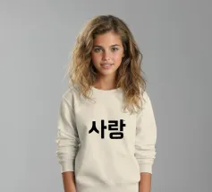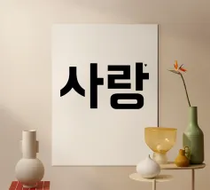사랑, amore in coreano. Tipografia in nero e bianco (trasparente). È possibile cambiare il colore dello sfondo. Poster tipografico minimalista.