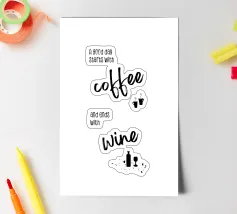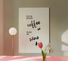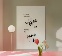 Non è bella la vita? Un design che si adatta al motto della vita. UNA BUONA GIORNATA INIZIA CON IL CAFFÈ E FINISCE CON IL VINO. Una buona giornata inizia con il caffè e finisce con il vino.