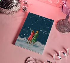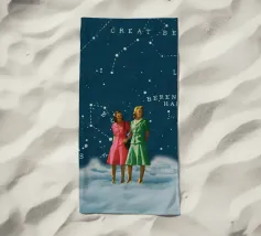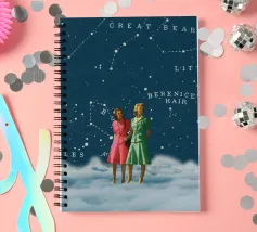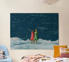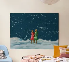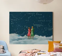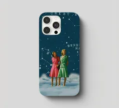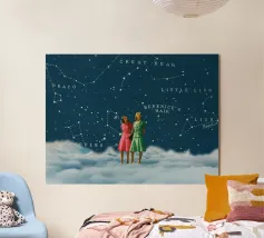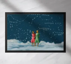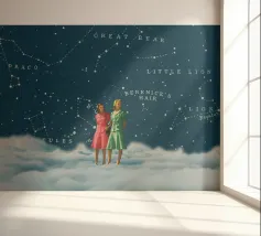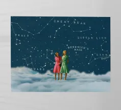Due amiche del cuore che camminano sulle nuvole e guardano le costellazioni, chiedendosi cosa riserva il futuro. Romantico collage vintage anni '50 con vibrazioni platoniche di MsGonzalez