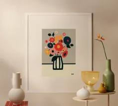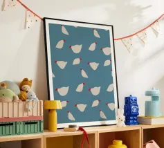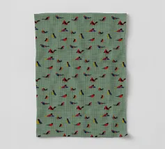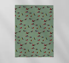 applicazioni. Caratterizzato da uccelli vivaci che fluttuano su un morbido sfondo verde, questo disegno unisce colori audaci a un'estetica minimalista, rendendolo ideale per l'arte murale, la carta da parati, la biancheria da letto, i cuscini e i tessuti per la casa. Ispirata all'arredamento scandinavo e moderno di metà secolo, questa stampa unica aggiunge un tocco di natura ed eleganza a qualsiasi spazio abitativo, cameretta o ambiente creativo.