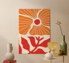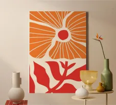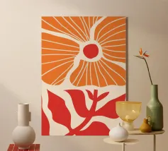 Questa stampa astratta di papaveri è caratterizzata da audaci fioriture arancioni e rosse, che danno un tocco di colore vibrante al vostro spazio. Il design dinamico e moderno offre una nuova interpretazione della natura, fondendo forme organiche e astrazione contemporanea. Perfetto per aggiungere energia e raffinatezza al vostro salotto, ufficio o spazio creativo, questo pezzo cattura la bellezza dei fiori in uno stile minimalista ma espressivo.