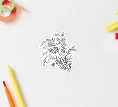Semplice disegno di ramo di foglie in nero e colori pastello.