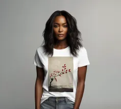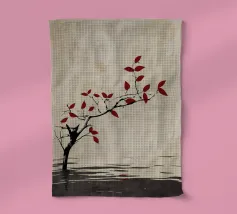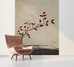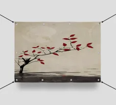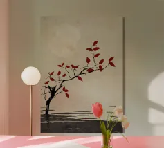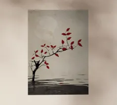 Trovate la serenità nella nostra opera d'arte che raffigura acque calme e un ramo d'albero da cui scendono dolcemente foglie rosse. Ideale per creare un ambiente tranquillo in casa o in ufficio, incarna tranquillità ed eleganza.