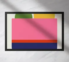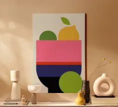 Un design minimalista con forme audaci e colorate che rappresentano limoni e lime in una moderna fruttiera. Perfetta per chi ama l'arredamento pulito e contemporaneo con un tocco di colore.