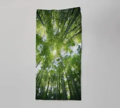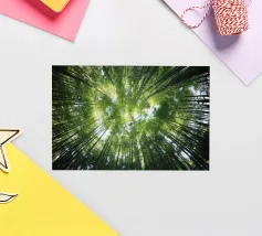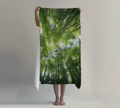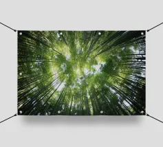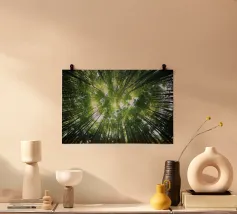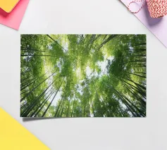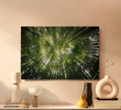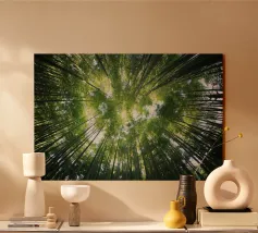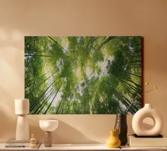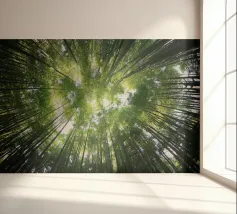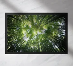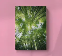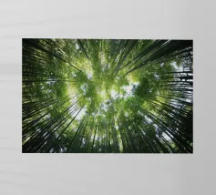 Dai nodi spuntano grappoli di foglie strette e appuntite, che svolazzano leggermente nella brezza. I boschetti di bambù creano un'atmosfera tranquilla, con un fruscio morbido quando le canne ondeggiano e battono l'una contro l'altra. La luce del sole filtra attraverso la fitta chioma, proiettando delicati disegni di luci e ombre sul terreno sottostante. Forte ma flessibile, il bambù incarna l'eleganza e la resistenza del mondo naturale.