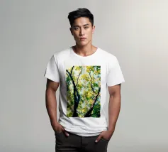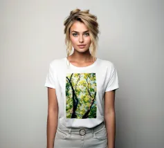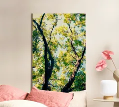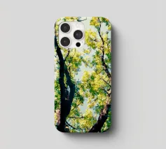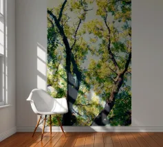 Un alto albero dalle foglie gialle si staglia con grazia contro il cielo, le sue chiome dorate brillano alla luce come un faro della bellezza autunnale.
