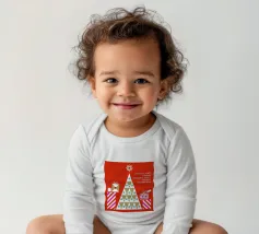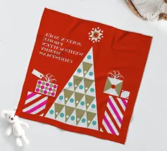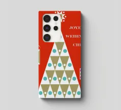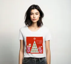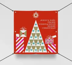 Un allegro disegno di albero di Natale con forme geometriche e regali colorati, perfetto per aggiungere allegria ai vostri spazi.