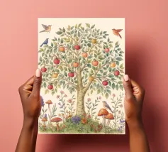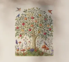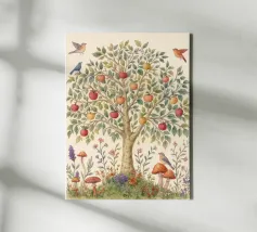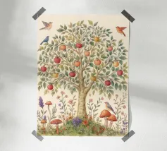 Questa affascinante opera d'arte da parete autunnale botanica presenta un albero di mele stravagante circondato da funghi colorati, fiori delicati e adorabili uccelli in uno stile boho vintage. Perfetto per aggiungere calore stagionale al soggiorno, alla camera da letto o alla cameretta, questo pezzo fonde la bellezza della natura con le accoglienti tonalità autunnali. Un regalo ideale per gli amanti della natura e per chiunque adori l'arte botanica vintage.