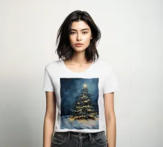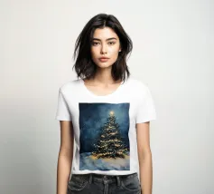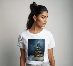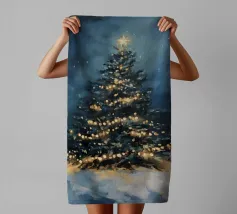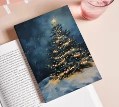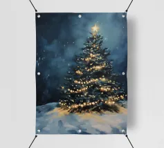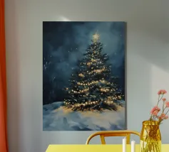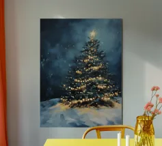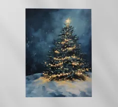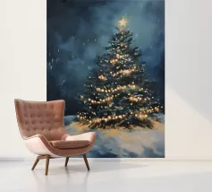 Questo suggestivo motivo mostra un magnifico albero di Natale che risplende nella neve, coronato da luci scintillanti e da una stella splendente. La scena festiva trasmette calore, magia e intimità natalizia. Ideale per murales, poster, cuscini, tazze o cover per cellulari. Perfetto per chi ama le decorazioni natalizie, l'arte invernale, le idee per la casa in festa, i poster natalizi, le idee regalo, lo spirito natalizio, la magia invernale, l'arte romantica, il Natale tradizionale e le decorazioni accoglienti.