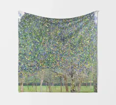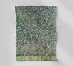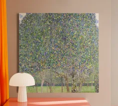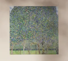 Albero di pere (1903) di Gustav Klimt In Albero di pere, Gustav Klimt cattura un singolo albero da frutto in piena fioritura, trasformandolo in un arazzo vivente di colori e forme. Dipinta durante il suo ritiro vicino al lago Attersee, quest'opera riflette il suo profondo impegno con la natura, dove ogni foglia e fiore diventa parte di un motivo decorativo. La composizione a ritagli stretti, le tonalità dorate e le trame dense parlano della miscela unica di simbolismo e Art Nouveau di Klimt. È un ritratto meditativo e gioioso della tranquilla grandezza della natura.