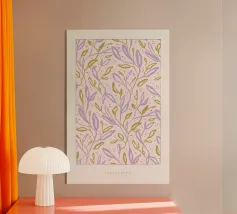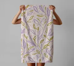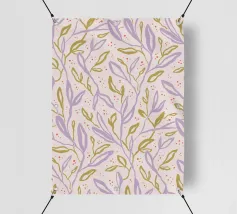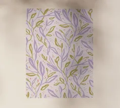 Questo motivo botanico senza cuciture presenta delicate foglie e viti viola e verde oliva su un morbido sfondo beige. Piccoli punti color corallo accentuano il disegno organico ed evocano un'atmosfera naturale e rilassante. Questa illustrazione ispirata alla natura è ideale per carte da parati, tessuti e design digitale. Combina colori tenui e tenui con linee intricate, rendendola perfetta per l'arredamento della casa, la moda e i progetti creativi.