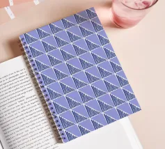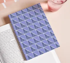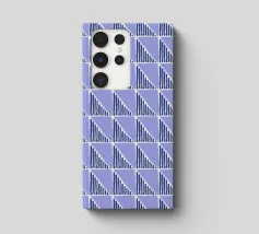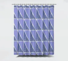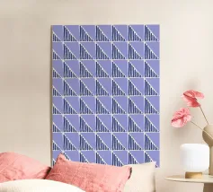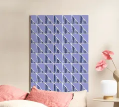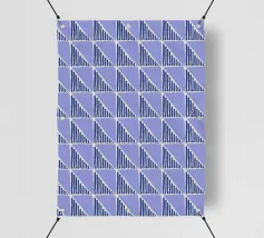 Questa immagine presenta un motivo geometrico composto da forme triangolari alternate, ciascuna riempita da linee orizzontali disegnate a mano.I triangoli sono disposti in un formato a griglia, creando un design ripetitivo e strutturato.La tavolozza dei colori offre uno sfondo morbido e viola con linee blu scuro all'interno dei triangoli.L'effetto disegnato a mano aggiunge una sensazione dinamica e strutturata al motivo altrimenti nitido e angolare.Questo design moderno è ideale per progetti grafici, tessuti o sfondi digitali e offre una sensazione dinamica e strutturata.