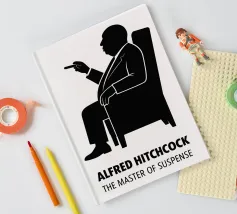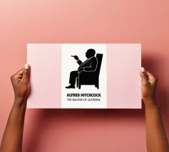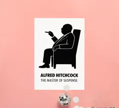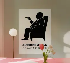 Stampa Alfred Hitchcock, Arte murale minimale, Bianco e nero, Silhouette di Hitch, Sigaro, Regalo, Il maestro della suspense, Cinefilia, Arte murale digitale