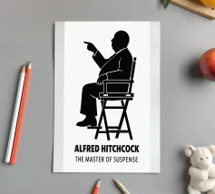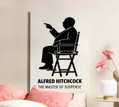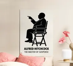 Stampa Alfred Hitchcock, Arte murale minimale, Bianco e nero, Silhouette di Hitch, Sedia del regista, Il maestro della suspense, Cinefilia, Film, Regalo
