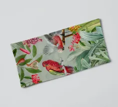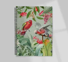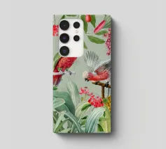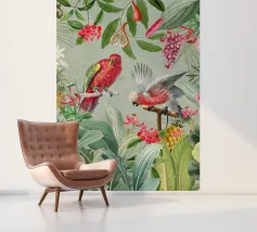 Questo collage vintage emana un'eleganza tropicale con un'accattivante miscela di foglie lussureggianti e frutti vivaci. Al centro, due straordinari cacatua rossi si appollaiano con grazia, con le loro piume infuocate che creano un drammatico punto focale. Il loro piumaggio audace e vibrante contrasta meravigliosamente con la ricca vegetazione e i frutti tropicali che li circondano. Le sottili texture vintage sullo sfondo aggiungono un senso di fascino senza tempo, mentre i colori vivaci danno vita alla scena, evocando un senso di lusso esotico e di bellezza naturale in un paradiso lussureggiante.