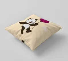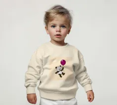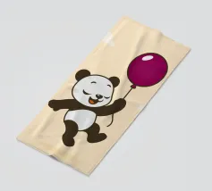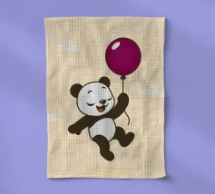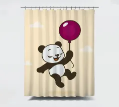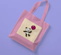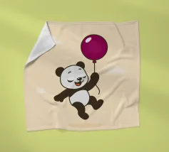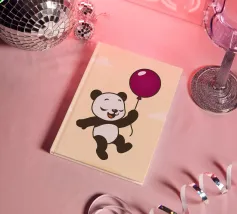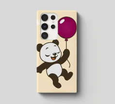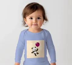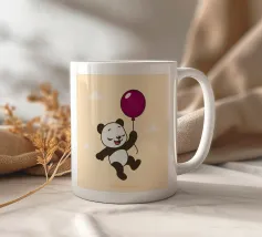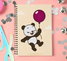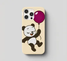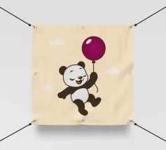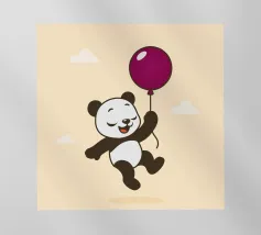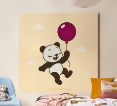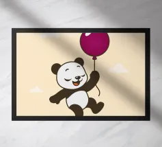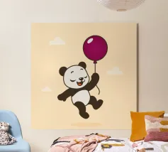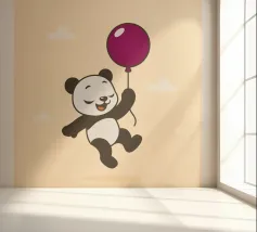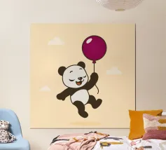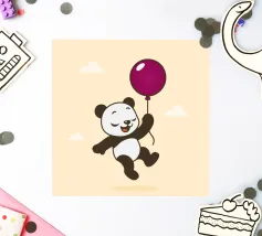 Un panda volante con un palloncino davanti al cielo e alle nuvole - perfetto per i bambini, gli amanti degli animali o per i disegni giocosi con un cuore.