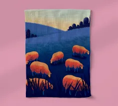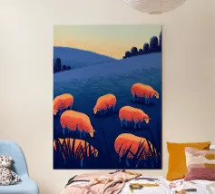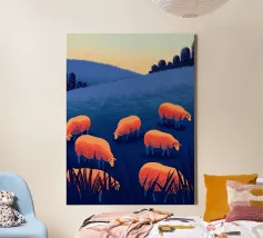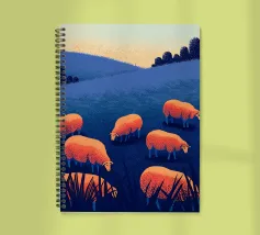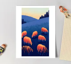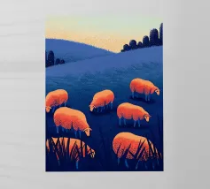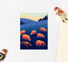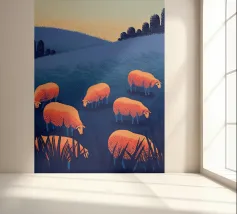 Illustrazione di "Allevamenti di pecore": La bellezza rilassante della campagna! Questo disegno presenta una tranquilla scena di allevamento di pecore, con simpatici dettagli di pecore e un bellissimo paesaggio.