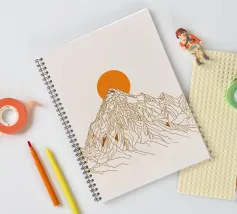 Crogiolatevi nella calda luce dorata di un nuovo giorno. Questa elegante opera d'arte cattura la serena maestosità di una vetta di montagna baciata dal sole del mattino. Linee intricate e fluide definiscono il paesaggio aspro, creando un bellissimo contrasto con il sole solido e audace. Quest'opera d'arte è un sofisticato tributo all'avventura, all'ambizione e al tranquillo stupore per la grandezza della natura. Un punto focale perfetto ed edificante per una casa o un ufficio moderni, che porta un senso di energia calma e possibilità infinite alle vostre pareti.