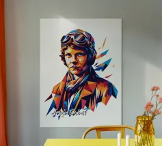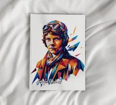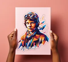 Celebrate lo spirito avventuroso di Amelia Earhart con questo splendido disegno Pop Art di WPAP. Forme geometriche audaci e colori vivaci reimmaginano l'iconica aviatrice, riflettendo la sua impavida ricerca dei cieli. Lo stile WPAP (Wedha's Pop Art Portrait) dà vita alla leggendaria immagine della Earhart, fondendo forme astratte con un tocco artistico moderno. Perfetto per gli appassionati di aviazione, storia e donne all'avanguardia, questo disegno è un tributo unico al coraggio e alla determinazione di una delle figure più ispirate del mondo.