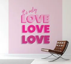 Un'esplosione morbida di rosa, questa stampa di testo da sogno lo dice forte e chiaro: amore, sempre. Con audaci lettere in 3D impilate in dolci sfumature e un pallido sfondo arrossato, è un pezzo moderno e romantico che porta calma, colore e gentilezza nel vostro spazio. Per gli amanti del soft power e delle vibrazioni dolci. Da showmemars