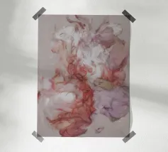 Quest'opera d'arte astratta dai tenui colori pastello cattura un'atmosfera naturale calma e armoniosa. Le morbide pennellate e i toni tenui del beige, dell'azzurro e del rosa conferiscono al dipinto un'eleganza moderna e minimalista che si adatta perfettamente a qualsiasi casa contemporanea.