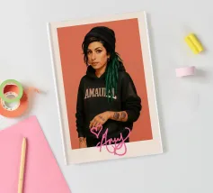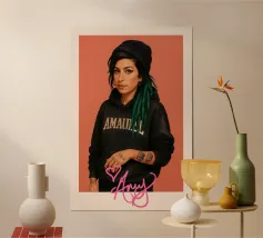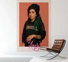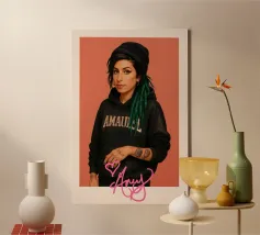 Amy Winehouse sotto una nuova luce: questo ritratto moderno mostra l'icona della musica in stile street, con felpa con cappuccio, cappellino e tatuaggi leggendari. Una combinazione riuscita di atteggiamento retrò e look urbano contemporaneo. Perfetto per i fan di Amy, della cultura pop e delle personalità forti. Ideale come stampa d'arte o poster per salotti, studi o come regalo per i veri amanti della musica.