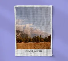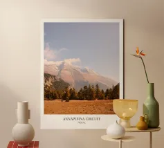 Immersa nella luce dorata del mattino, questa veduta cattura la bellezza cruda e selvaggia dell'Himalaya. Una composizione potente e pacifica dal Circuito dell'Annapurna, perfetta per chi trova ispirazione nell'altitudine, nel silenzio e negli orizzonti lontani. Portate lo spirito del vasto mondo montano del Nepal nella vostra casa.