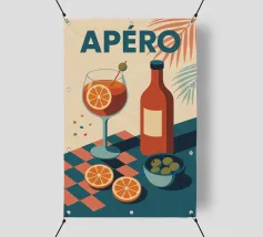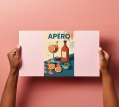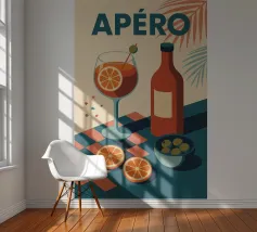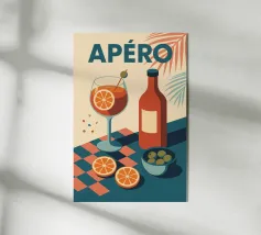 Un omaggio visivo al momento preferito dalla Francia: l'aperitivo. Bicchiere da cocktail, bottiglia di vino, olive, agrumi a fette... C'è tutto. In uno stile grafico colorato e vintage, questo poster risveglia i sensi e invita alla convivialità. Un must decorativo per gli amanti dei momenti semplici e gustosi.