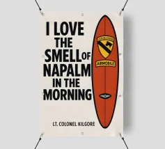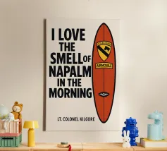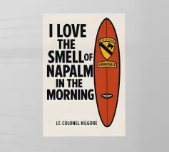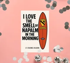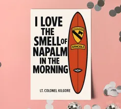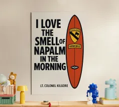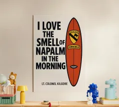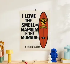 Stampa Apocalypse Now, Poster cinematografico alternativo, Arte murale minimale, Bianco e nero, Citazione cinematografica, Odore di Napalm, Tavola da surf, Regalo per i fan del cinema