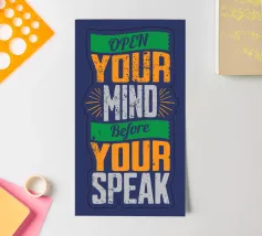 Irradia vibrazioni positive con la vivace stampa tipografica "Open Your Mind Before Your Speak". Questo messaggio invita tutti a fare sempre attenzione quando si parla e si parla. Mantenete la calma e cercate di pensare con chiarezza, in modo che le vostre parole possano riconciliare i cuori di chi vi ascolta. Pensate prima e capite davvero quello che dicono. Poi, riflettete attentamente, dopo di che rispondete anche voi, naturalmente con cautela. Questo design unico cattura perfettamente lo spirito allegro della frase, invitando le vibrazioni positive nella vostra casa, nel vostro ufficio o nel vostro stile personale.