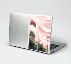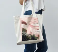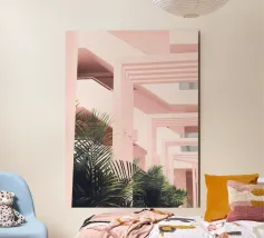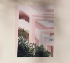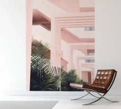 Questo imponente design è caratterizzato da linee chiare e da una disposizione geometrica armoniosamente completata da morbide tonalità pastello. Le strutture a incastro, abbinate a piante verdi, creano un'elegante interazione tra natura e architettura. Il motivo è rilassante e stimolante e si adatta perfettamente agli spazi abitativi moderni. Che si tratti di un murale, di cuscini o di altri accessori per la casa, questo disegno porta freschezza e stile alla vostra casa.