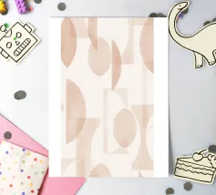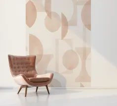 Il disegno presenta un'accattivante disposizione di cerchi, rettangoli e forme astratte di foglie sovrapposte, che alludono sottilmente a forme organiche all'interno della struttura. La texture granulosa aggiunge profondità e interesse visivo.