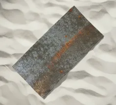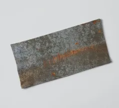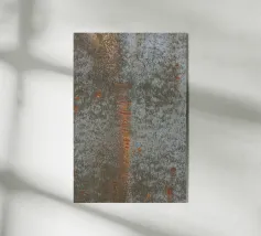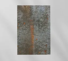 Vecchia superficie metallica con macchie arrugginite e scoppiate. Un'opera d'arte astratta.
