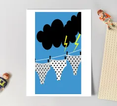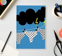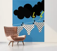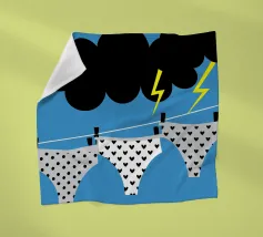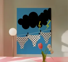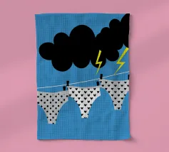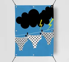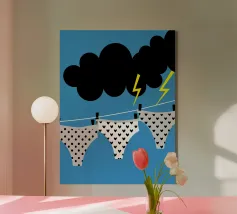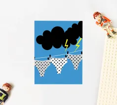 L'illustrazione "Underwear Drying" presenta un'immagine di biancheria intima in fase di asciugatura, con un design semplice ma accattivante.
