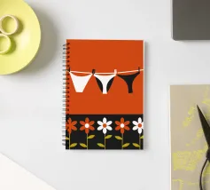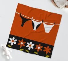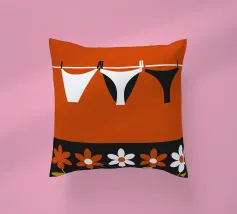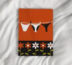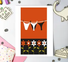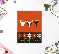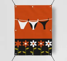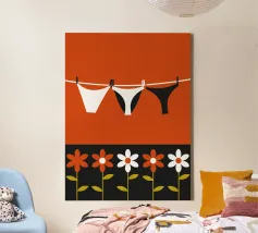 L'illustrazione "Drying Underwear" presenta un design minimalista ed estetico che raffigura la biancheria intima appesa ad asciugare.