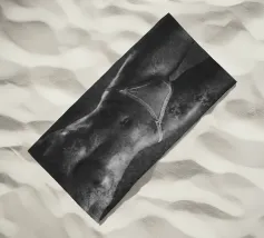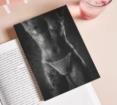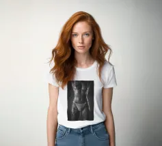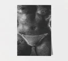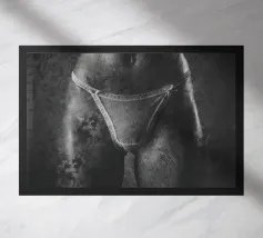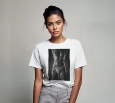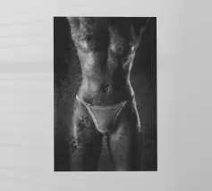 Uno scatto semi-nudo in bianco e nero di Ashlee con una piccola lingerie bianca.