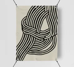 e linee nere intrecciate creano un motivo astratto e audace su uno sfondo chiaro. Le curve e le anse suggeriscono movimento e complessità, catturando lo sguardo con il loro flusso ritmico.