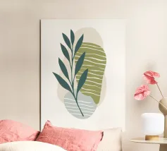 Un'elegante composizione botanica in stile astratto minimalista, perfetta per interni moderni e nordici. I toni caldi e naturali del verde e del grigio si fondono con forme organiche e texture delicate, creando un effetto rilassante e sofisticato. Ideale per soggiorni, camere da letto o spazi creativi. Una stampa d'arte pensata per chi ama la natura, la semplicità e il design contemporaneo.