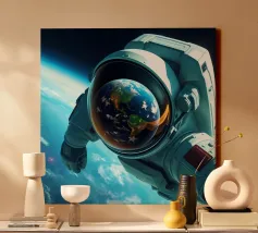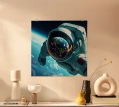 "Astronaut Earth" è un'opera d'arte digitale in impressionante grafica computerizzata. Un astronauta fluttua senza peso nello spazio, con la terra incandescente in vivaci toni blu e verdi davanti a lui. Dettagli raffinati come i riflessi nel casco e le texture realistiche creano una scena affascinante e quasi tangibile. La tecnologia digitale unisce scienza e fantasia, mostrando la meraviglia del nostro pianeta e la vastità dell'universo. "Astronaut Earth" simboleggia la scoperta, la libertà e il legame con il nostro pianeta natale Terra in un linguaggio visivo moderno.