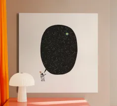 Un affascinante astronauta che sembra discutere appassionatamente di un argomento. Accanto all'astronauta, una bolla vocale è riempita da un universo in espansione, con innumerevoli stelle e il pianeta Terra. Quest'opera d'arte accattivante e minimalista è perfetta per chiunque abbia un'affinità con gli astronauti e i temi spaziali.