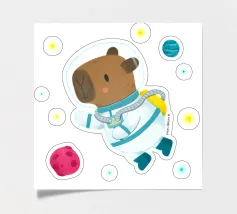 Simpatico disegno di astronauta capibara nello spazio