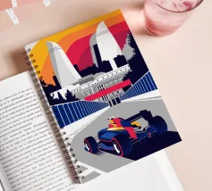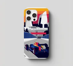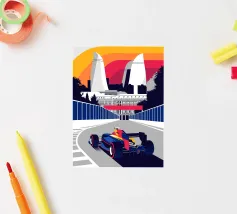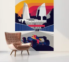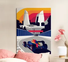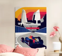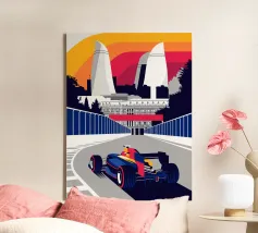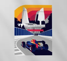 Scena di Formula Race Car Baku - Design grafico retrò.